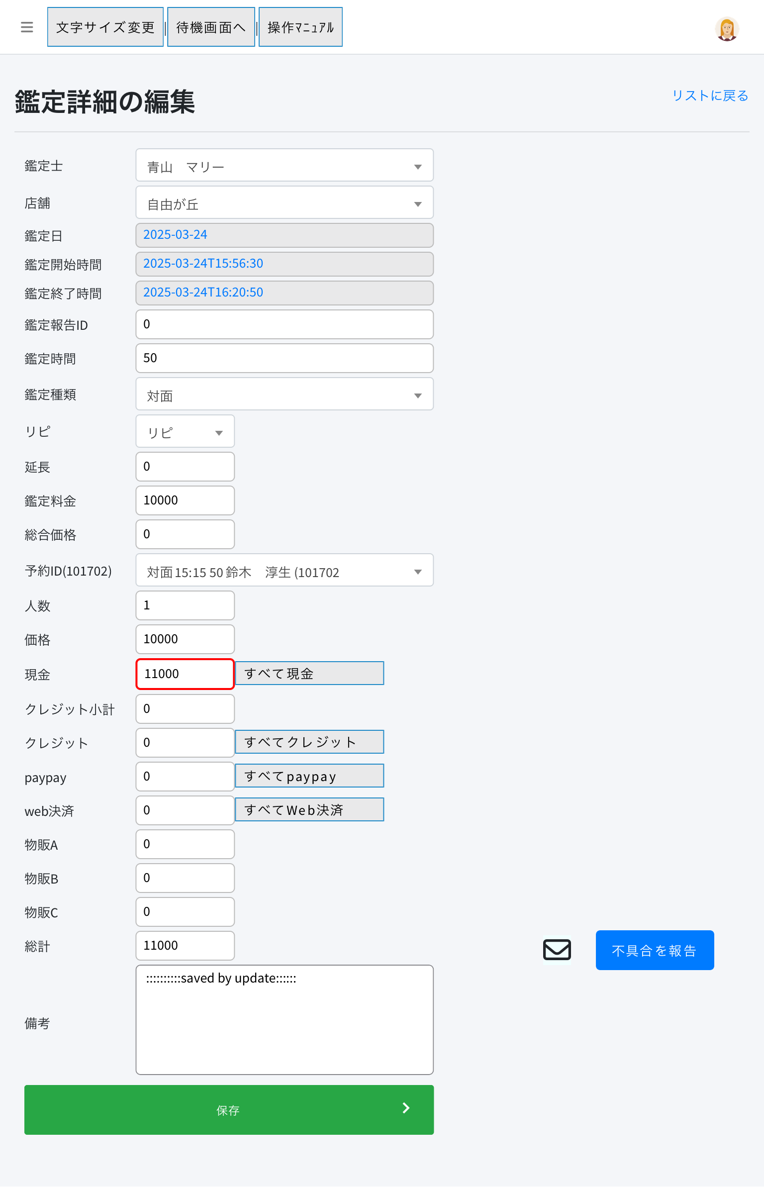 エラー内容: ポイント1000円利用して、現金10,000円に修正お願いします。