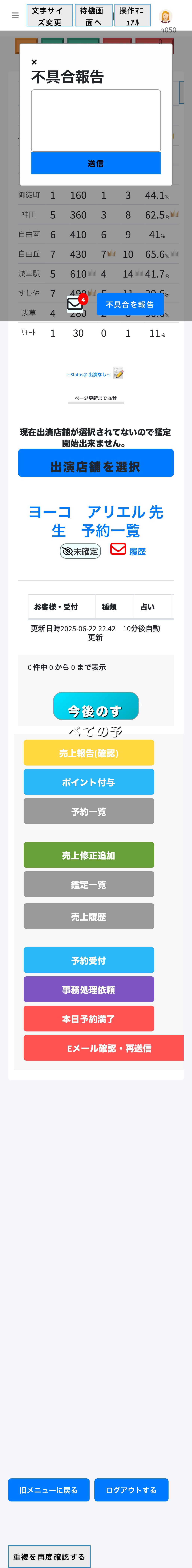 エラー内容: 退勤後も待機中になっています。 9時以降の鑑定分が、加算されていません。