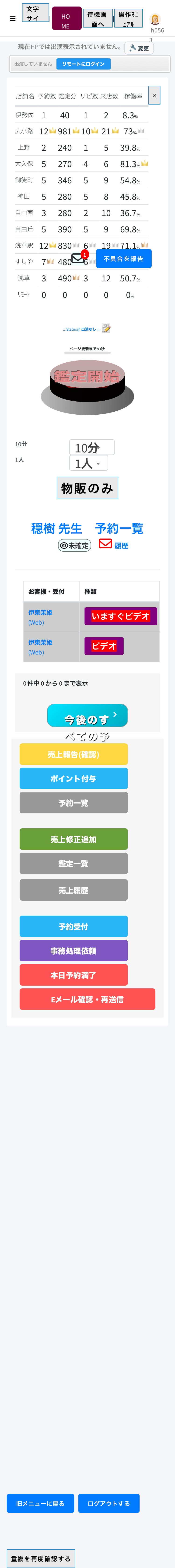 エラー内容: 自分で予約受付中に変更いたしました。 失礼いたしました