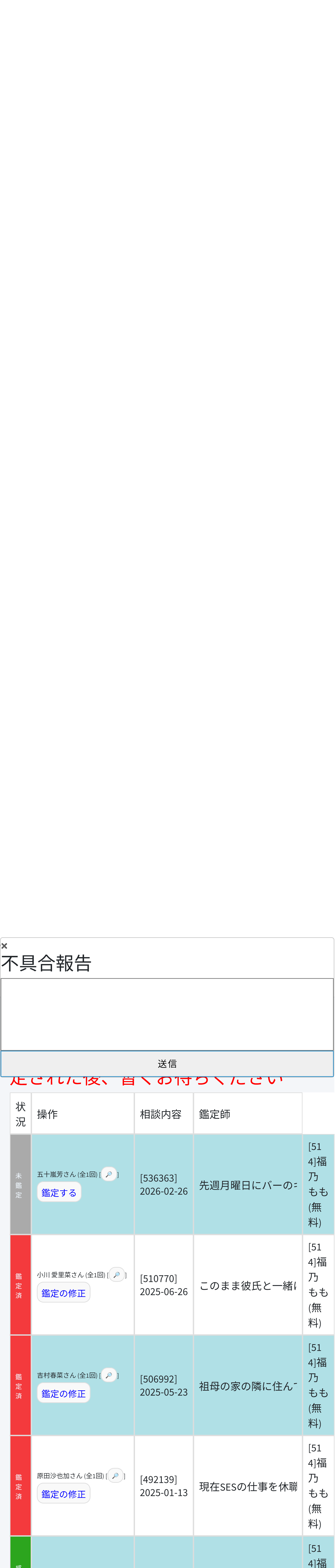 エラー内容: 鑑定しているのに不具合になります。半日以上経過しています。 よろしくお願い致します。